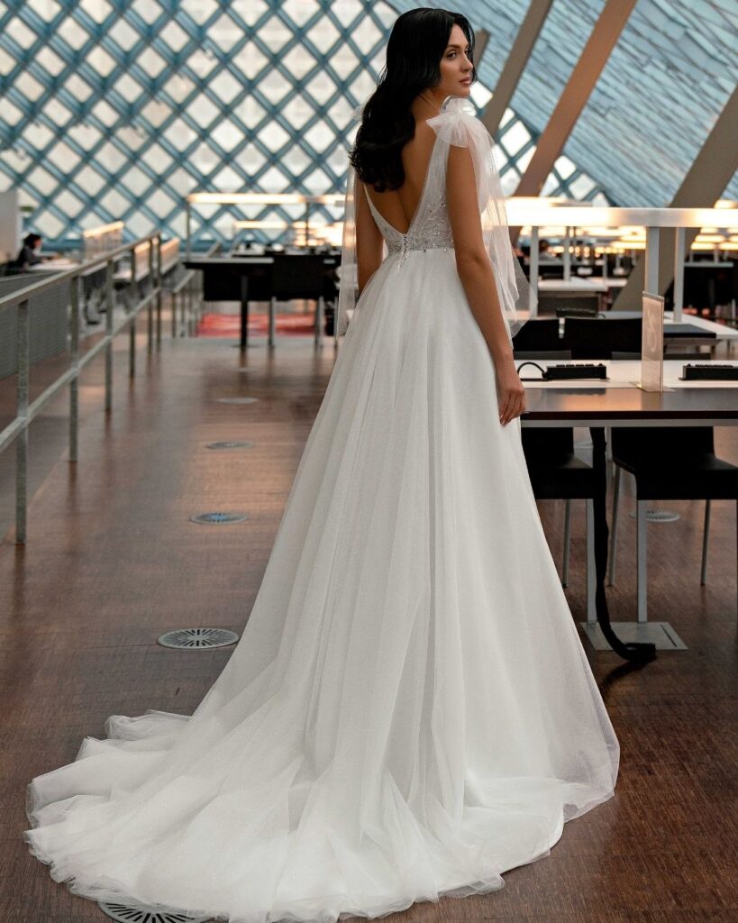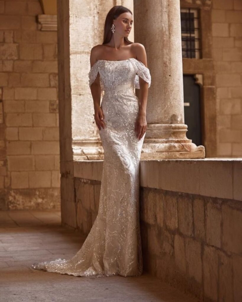 Νυφικό με κορσέ και μικρά μανίκια Halinor